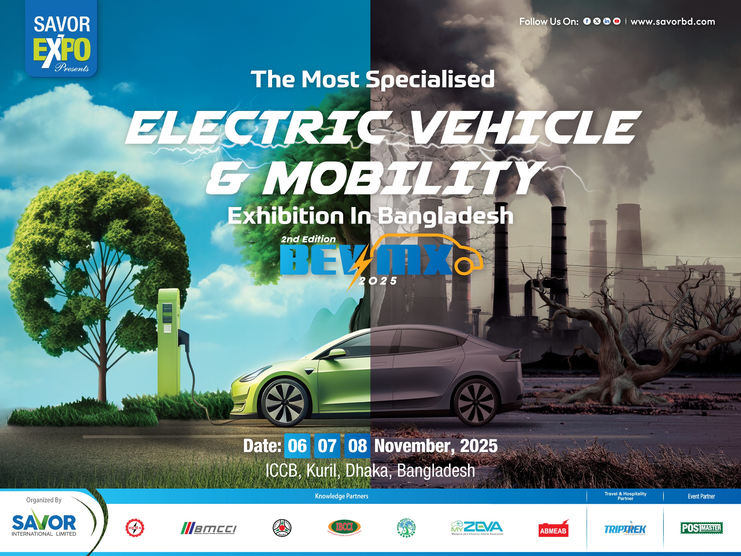 After the enormous success of many International Exhibitions Savor International Limited brings to you country’s 1st ever International Exhibition on Electric Vehicles (EVs) titled “Bangladesh Electric Vehicle & Mobility Exhibition 2025”. This International Exhibition is scheduled to be held from 06 – 08 November, 2025. The BEVMX 2025 in Bangladesh offers several benefits for various stakeholders involved in the electric vehicle (EV) industry. The BEVMX 2025 showcases the latest advancements in EV technologies, components, charging infrastructure, and renewable energy integration. It allows participants to explore cutting-edge solutions, gain insights into market trends, and stay updated with the latest developments in the EV sector.
